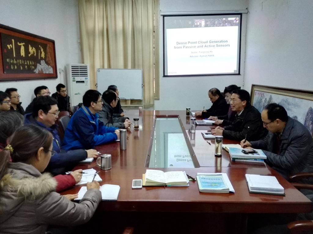 座谈会上,何方宁以 “Dense Point Cloud Generation from Passive and Active Sensors”为题,介绍了密集点云数据的获取途径、配准方法和流程,以及在建筑物和农作物估产中的应用。之后,与会人员就密集点云数据采集、计算方法、中美巨乳av教育差异等问题进行了深入讨论和交流。