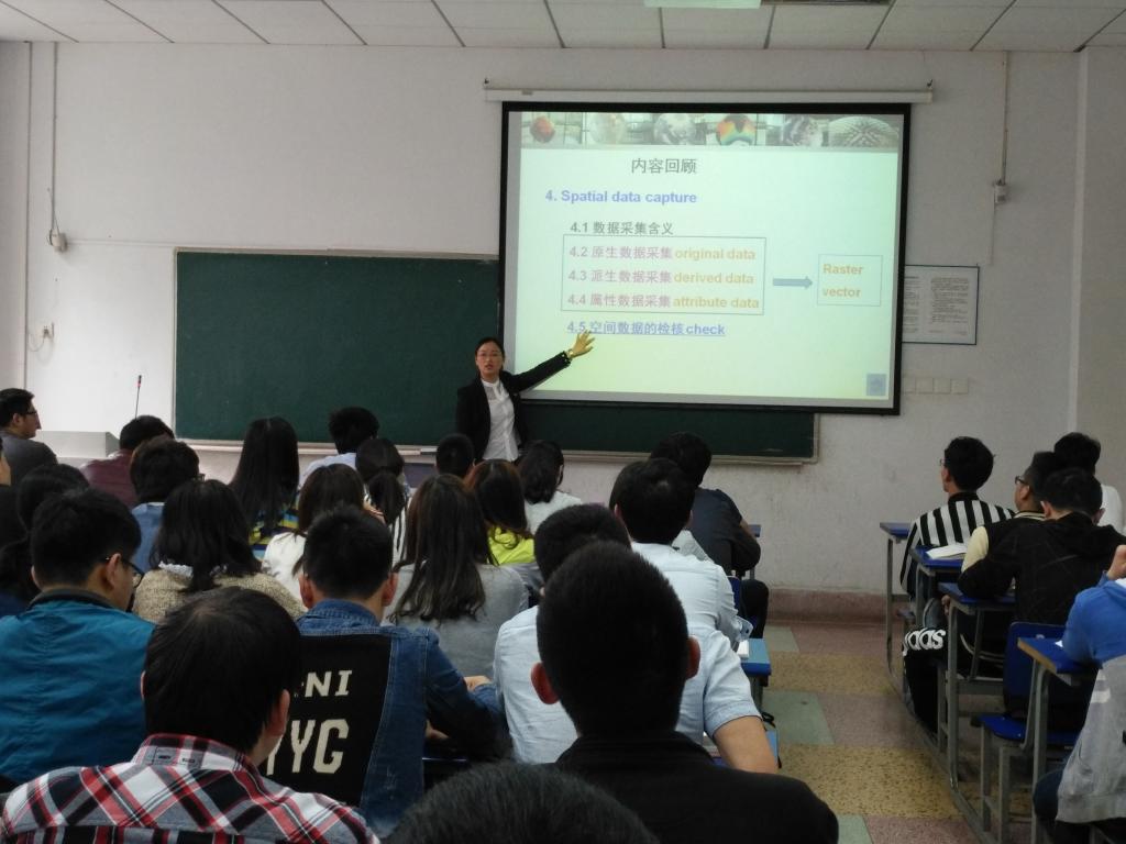 本次示范教学由地信教工党支部宣传委员郭伟玲老师主讲,院党委副书记吴军、行政副院长姚嗣宏及地信系部分教师到场观摩和学习。