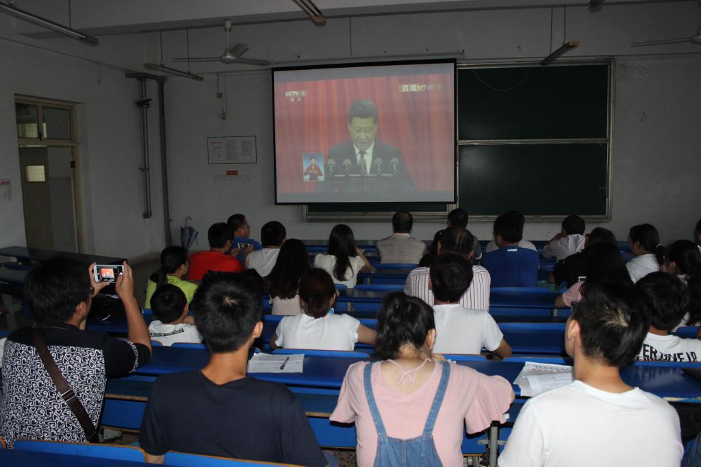师生观看大会直播现场2(摄影:祁龙)