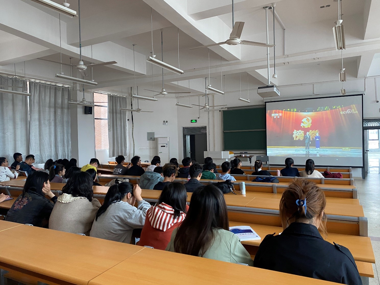 学生集中观看《榜样5》专题节目(摄影:纪小雪)