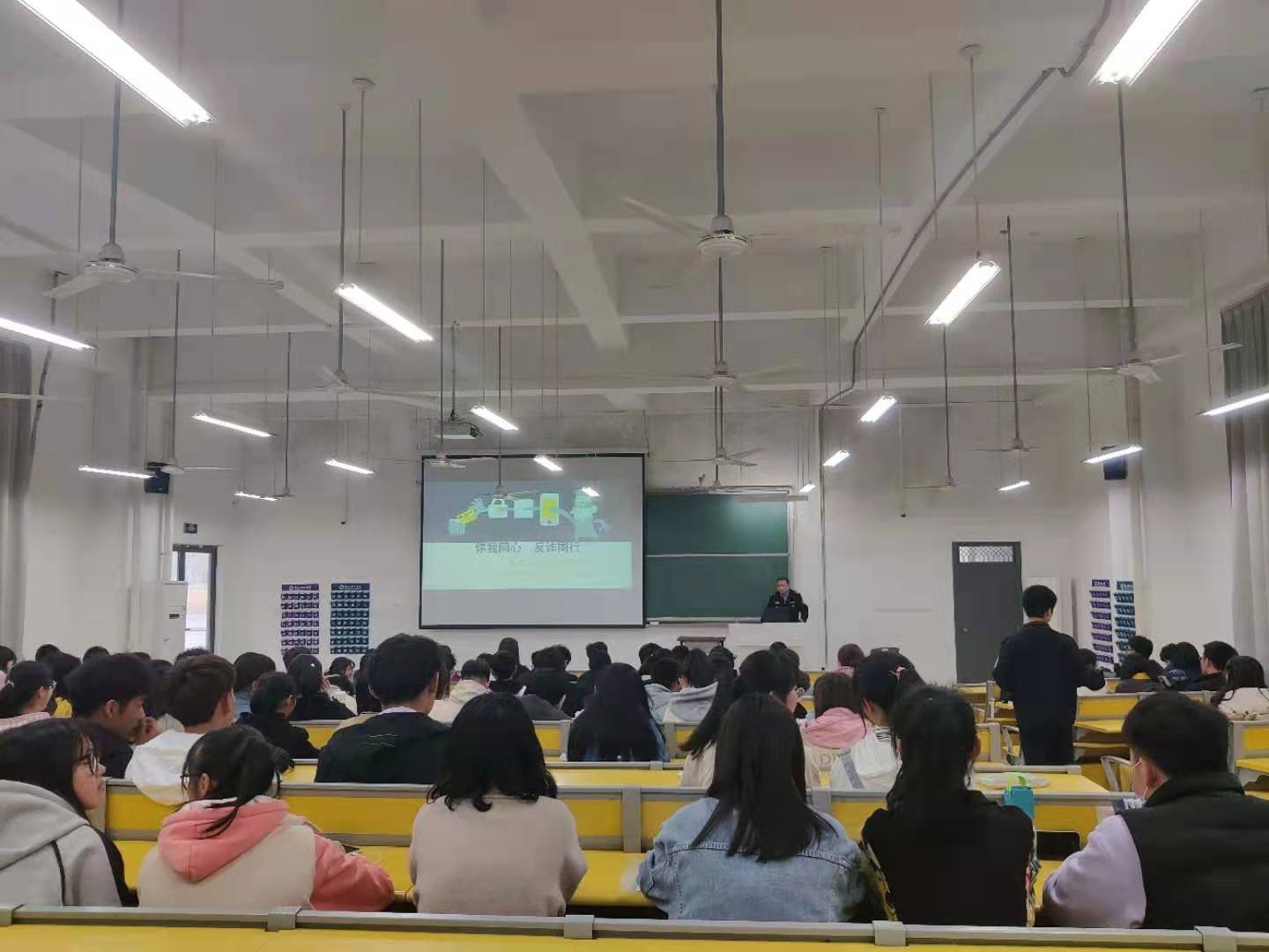 井警官从“断卡”行动和淮南市电信诈骗的真实案件讲起,强调在网络时代电信诈骗形式和手段趋于多样化,紧接着通过视频和动画详细讲解了电信诈骗的常见形式和手法,包括电话诈骗、刷单、冒充熟人诈骗、中奖诈骗以及盗取QQ号向好友借款等模式,分析了诈骗分子的诈骗技巧和心理。同时,重点向学生讲解了如何防范各种类型的诈骗,希望学生在生活中不要轻易转账、不要轻易相信网络上高回报投资,树立正确的金钱观。