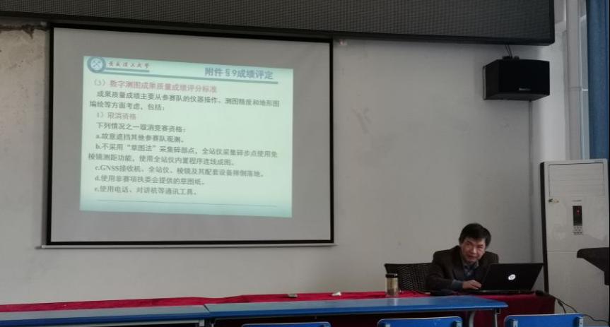 于4月8号在北512会议室举行裁判工作培训会,总裁判长就竞赛场地情况、裁判工作规则及纪律要求、内外业评分标准等进行了详细的说明。总裁判长强调,要把握裁判工作的重点环节,始终要坚持公平、公正、科学、高效的原则,坚持按照标准化的要求,减少主观因素带来的影响,设置相同评裁尺度,认真履行好裁判工作。