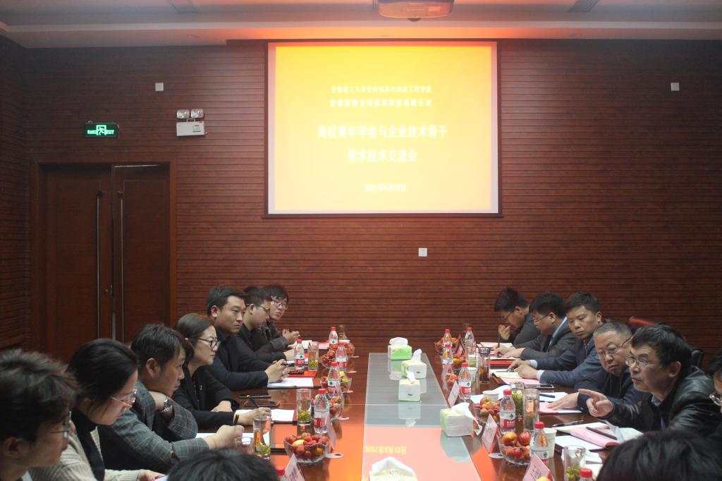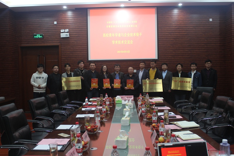 党委书记吴军、党委副书记刘瑞、副院长余学祥教授等一行8人,前往安徽前锦空间信息科技有限公司走访交流,举行校企共建实验室签约仪式及高校青年学者与企业技术骨干学术技术交流会。签约仪式和交流会由安徽前锦公司总经理盛鸣红女士主持。