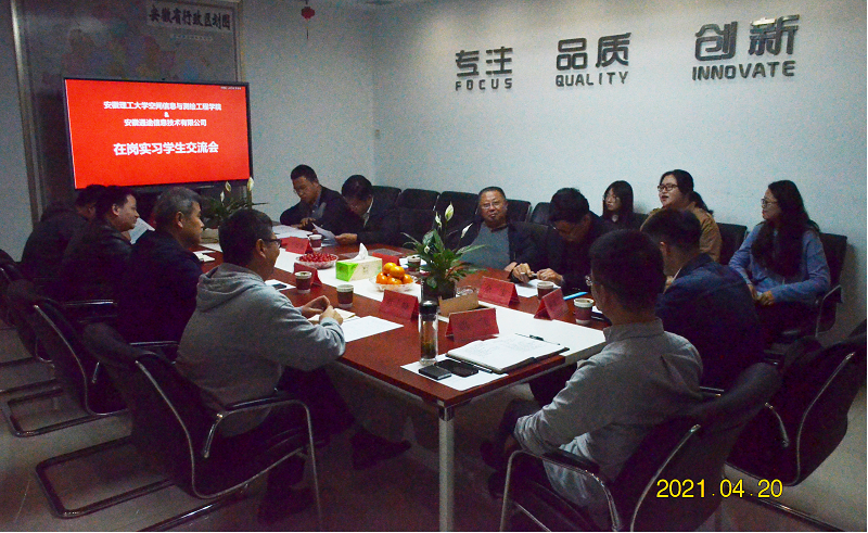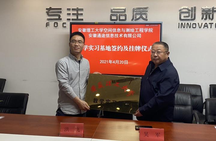 党委书记吴军等一行5人赴安徽省通途信息技术有限公司看望慰问在实习学生并举行实习基地签约与挂牌仪式,受到通途公司总经理叶林海、安徽省GIS技术研究所所长叶峰等的热烈欢迎。