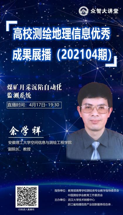 测绘类专业教学指导委员会、中国测绘学会教育工作委员会)邀请,担任“众智大讲堂-高校测绘地理信息优秀成果展播”(202104期)主讲专家。