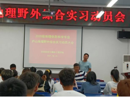 北512报告厅举行。院副书记兼行政副院长刘瑞、业务副院长王磊、地信系主任王世航、实习指导老师杨震、辅导员韦伟出席动员会,地信20-1班全体学生参加了动员会。动员会由韦伟主持。