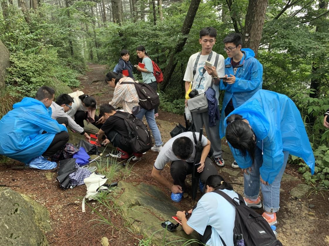 实习过程中,指导教师通过地形图与野外实地相结合的生动直观的教学方式,结合使用罗盘,带领同学们逐步观察庐山地区的地质地貌现象,从而分析复杂的地貌过程和认识变迁历史;沿途向同学们讲解各种植物类型,并感受不同气候带下植被群落的变化以及与地理环境的相互关系;结合气候与植被的相关知识,带领同学们观察、认识不同类型的土壤剖面,分析成土因素和成土过程的差异;通过不同高度气象数据的对比带领大家充分了解庐山垂直气候带的变化,并讨论了地形雨、庐山云雾等特殊的小气候现象。