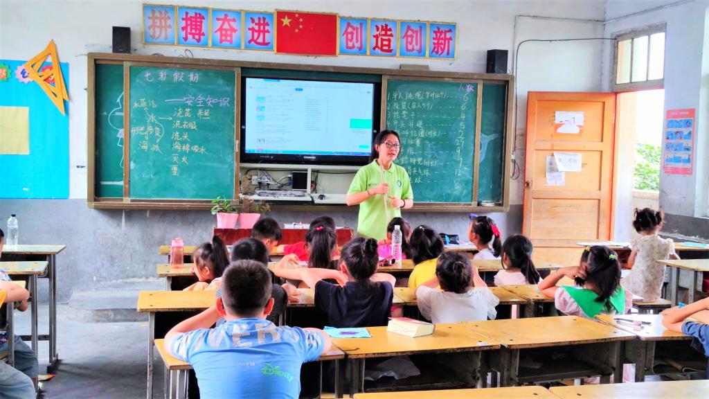 长充分了解孩子的情况,关注孩子们的身心健康。考虑到留守儿童可能存在的心理问题,志愿者们专门开设了一场生动有趣的心理健康教育,通过漫画和视频让孩子们了解健康的心理状态,预防和应对校园欺凌正确方法,增强孩子的自我保护意识,帮助孩子健康成长。