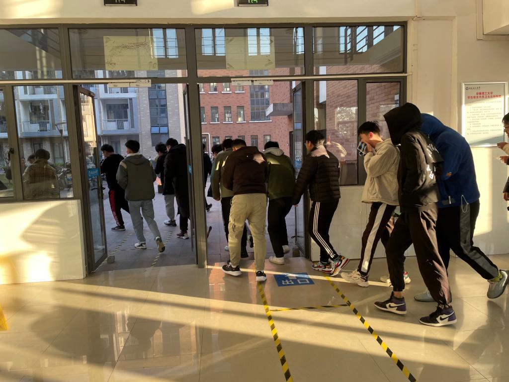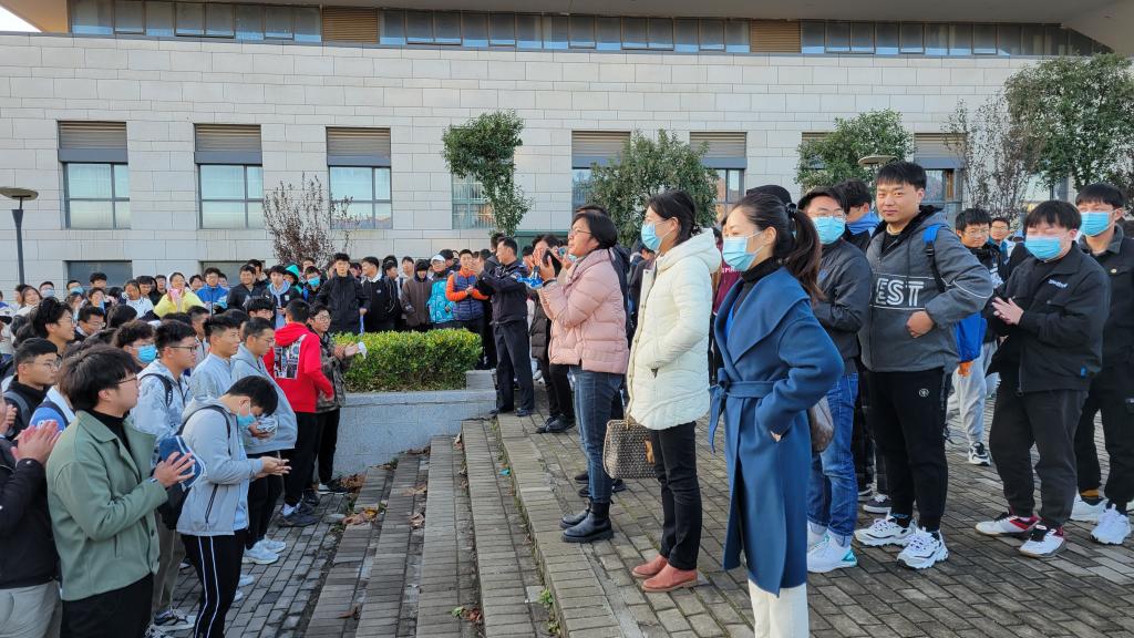 全体本科男生在辅导员的指挥下,各寝室长马上组织人员,迅速进入紧急疏散状态。在寝室长的带领下,同学们迅速用湿毛巾捂住口鼻有序撤出寝室,疏散到指定地点。这次演练活动安排周密,师生高度重视,各司其职,认真配合,师生们临危不乱,整个撤离过程快而有序、效果良好。