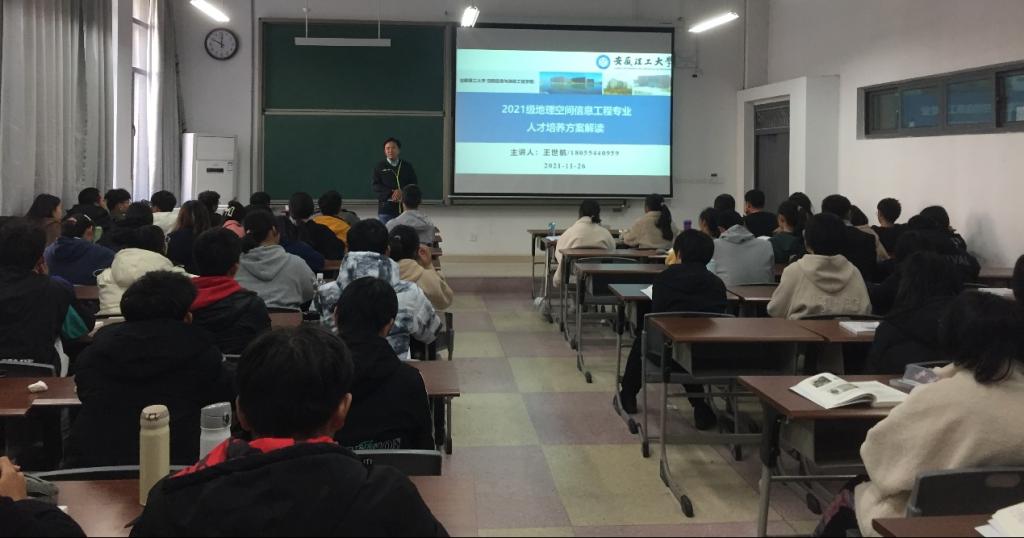 为帮助学生更好地明确专业培养目标和毕业要求、熟悉专业课程体系、科学规划专业学习生涯,进一步加强师生间的沟通和交流,11月26日上午,地理空间信息工程系在天工北107教室举行讲座,为2021级地理空间信息工程专业学生解读专业人才培养方案。讲座由地理 空间信息工程系主任王世航主讲,部分专业教师参加。