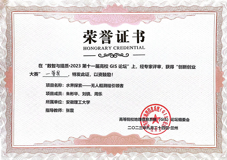 地理空间信息工程专业2021级本科生朱彬华、刘骁参加会议并在“GIS融合创新与产业成长”分论坛参加创新创业大赛答辩。经过激烈角逐,朱彬华、刘骁的作品《水界探索-无人船测绘引领者》荣获高校GIS论坛创新创业大赛一等奖。