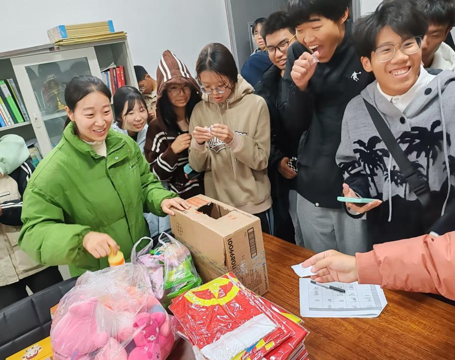 心理辅导站工作人员提前征集并准备了写有鼓励话语的纸条、快乐的事和序号(部分),激励同学们积极正向思考;然后由工作人员将纸条分别装入盲盒并提前藏于仰山广场附近。活动过程中,学生们都积极参与其中。当找到盲盒后同学们开心的分享盲盒中的“喜悦”,现场气氛融洽和谐,整个游戏的开展,规范合理,达到了预期目标,同时也缓解了同学们的焦虑,使长时间感觉身心疲惫的同学释放了积压已久的压力。最后,寻盲盒活动结束后,同学们回到了兑奖处进行集体合照留念,通过心灵的碰撞,同学们不仅扫去了心中的阴霾,更在校园中传递了温暖与力量。