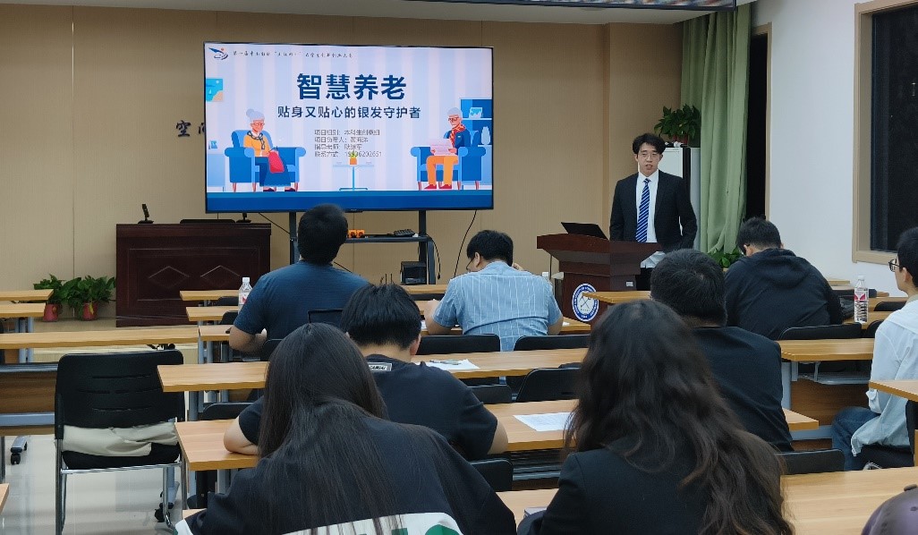 本次比赛采用答辩汇报方式进行,各参赛团队按参赛赛道和组别进行现场汇报答辩,包括7分钟陈述和3分钟答辩两个环节。评审老师从教育维度、创新维度、团队维度、发展维度、商业维度和社会价值维度等多角度出发,对各小组作品进行评审打分,并针对项目内容、技术实现、创新点等方面给出相关的修改建议。