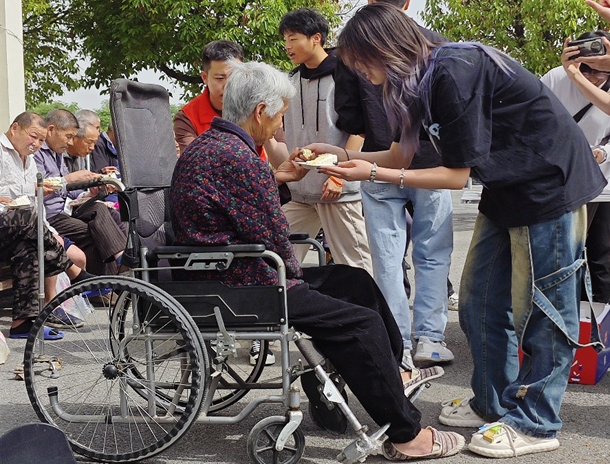 当天,志愿服务团一行30人带上水果、寿面、毛巾、蛋糕,在服务中心负责人的带领下拜望了各位老人,为他们送去慰问品。大学生们为敬老院的老人们过了集体生日,祝老人们健康长寿,幸福安康,享受温馨和谐的美好时光。同学们陪老人下象棋,为每一位老人换了新毛巾,发了寿面,与老人促膝长谈,细心询问他们日常生活和健康状况。老人们与同学们分享了自己的人生阅历,纵使经历了风风雨雨,他们依然对生活满怀热爱,对未来充满期待。这种精神深深地打动了大家,同时也激励着同学们要珍惜当下,努力拼搏。老人们还观看了大学生们的剪纸、叠纸鹤表演,脸上洋溢着幸福的笑容。