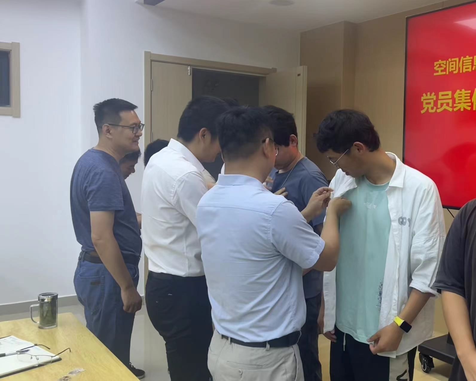 领导为新发展的党员佩戴了党员徽章,让新党员们在享受自豪和喜悦的同时,也感受到了责任与担当。