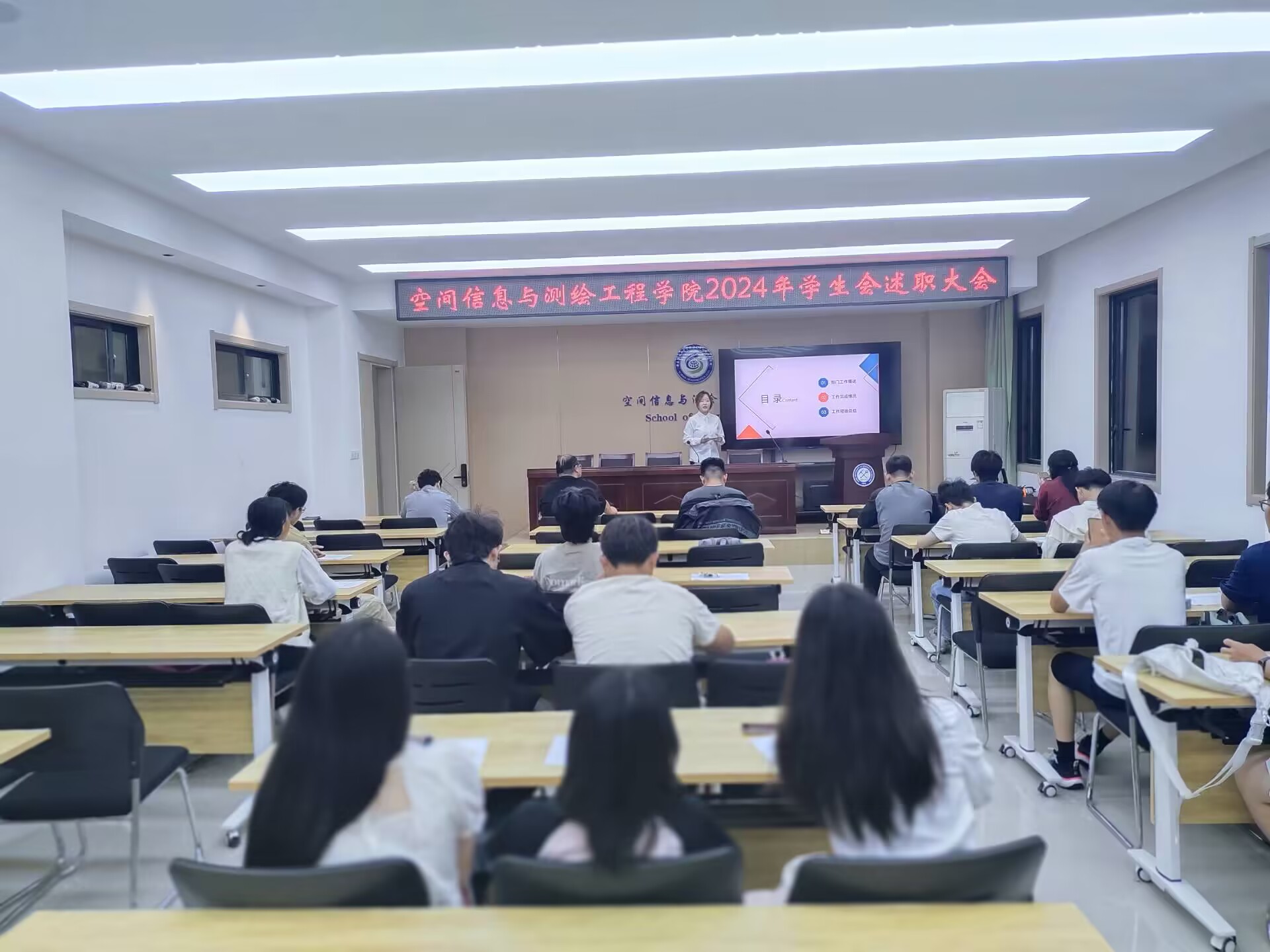 楼北204召开2023-2024学年度团学组织述职评议会。院党委副书记孟静、院团委书记、辅导员、学生代表参会。巨乳av
