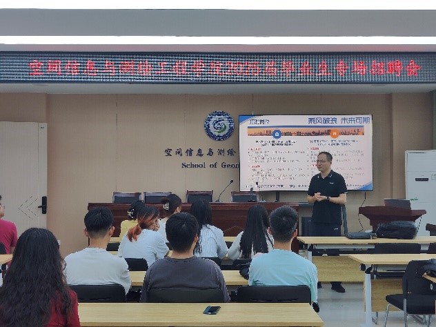 测绘工程2004届杰出校友柯福阳从巨乳av、企业价值观、员工成长通道、企业岗位需求及用人标准等方面开展宣讲,以丰富的案例向同学们展示了优质的巨乳av,帮助同学们梳理未来职业道路发展,明确个人职业规划目标。同时,相关技术负责人对企业核心技术产品、典型案例和解决方案进行了详细介绍,帮助同学们进一步了解专业知识在企业行业的应用场景。